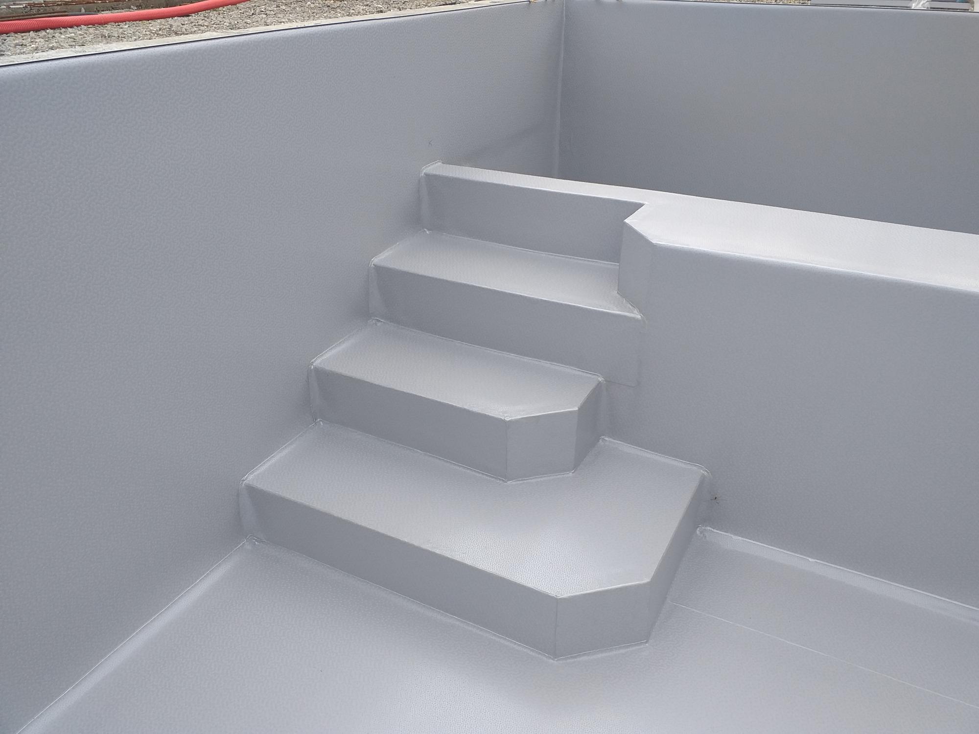 Grâce à la pose d’un liner armé, les escaliers peuvent être réalisés sur mesure, quelles que soient leur forme ou leur configuration : escaliers droits, d’angle, arrondis, banquettes immergées ou plages peu profondes. Cette flexibilité permet de créer des espaces à la fois pratiques et élégants, adaptés à vos besoins et à votre style de piscine.