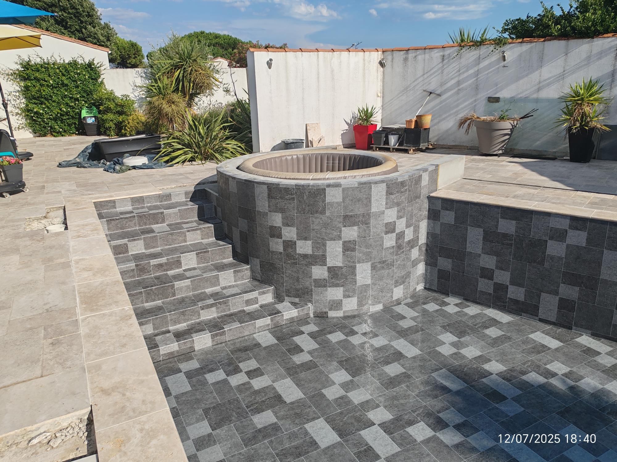 Réalisation d’une piscine SPA en pierre de Bali avec membrane armée