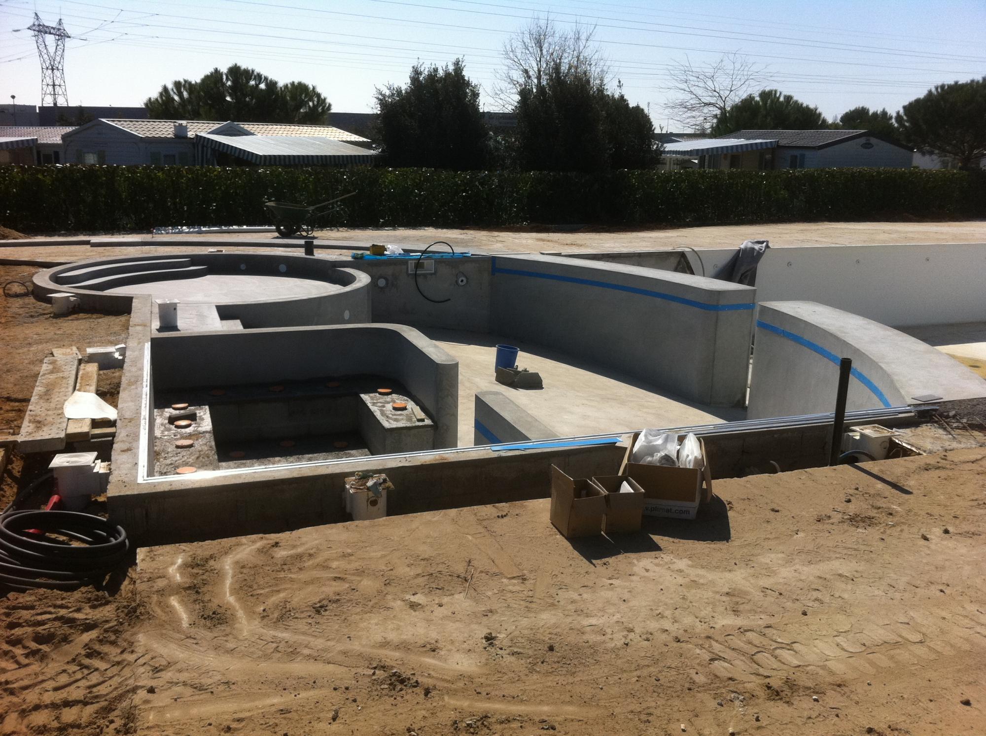 Le chantier se distingue par la complexité de ses formes : escaliers sur mesure, espace balnéo, bassin circulaire dédié aux enfants, ainsi que l’habillage de deux murs en demi-lune avec étanchéité intégrée sous carrelage.