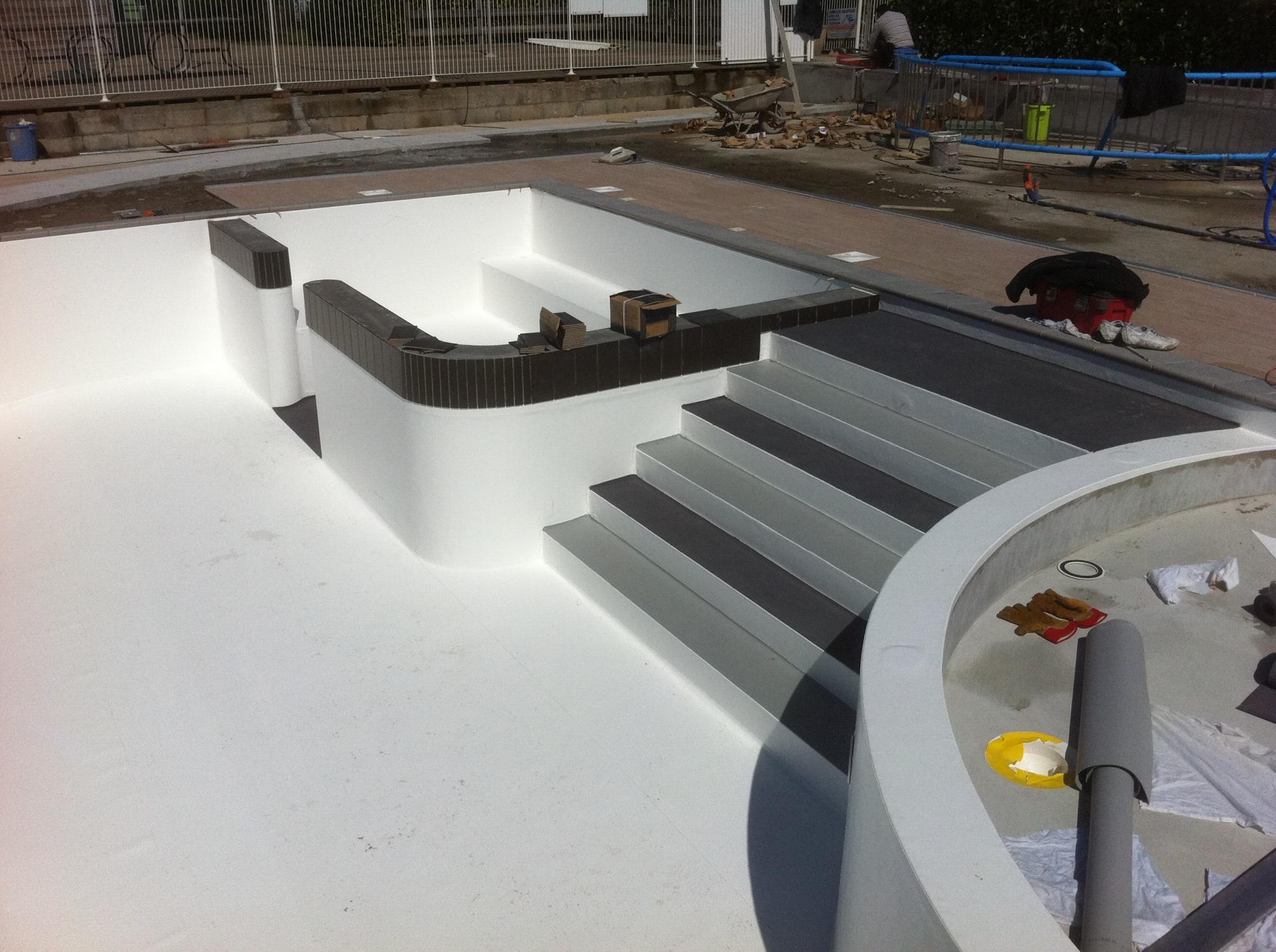 Une intervention délicate a également été réalisée avec la reprise du liner armé neuf soudé sur l’ancien, dans la zone où la structure initiale du bassin n’a pas été modifiée.