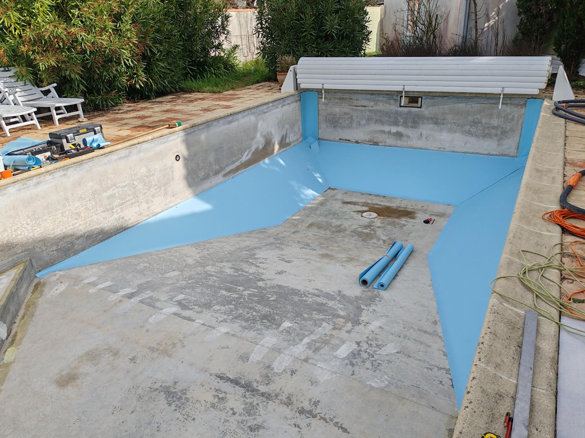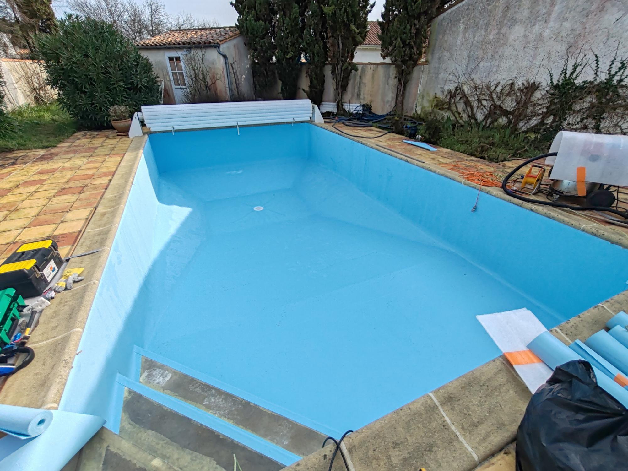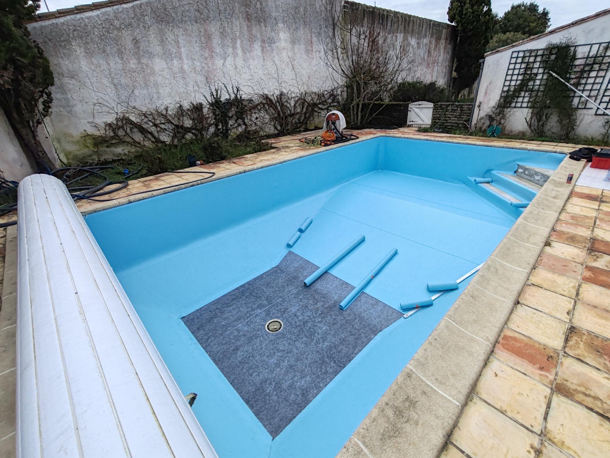 Rénovation de liners › Rénovation de piscine aux Portes-en-Ré : pose de liner armé 150/100