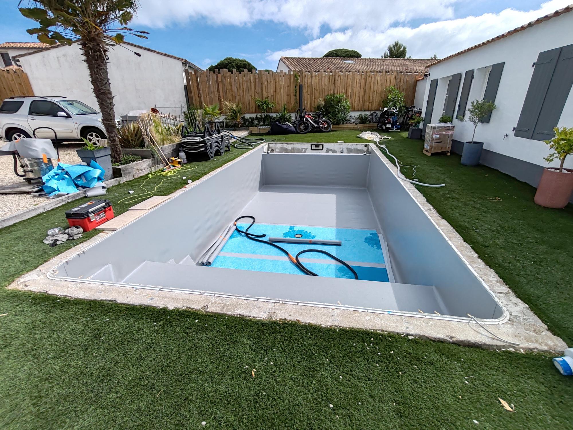 Rénovation de liners › Rénovation de piscine à La Couarde-sur-Mer : pose de liner armé 150/100