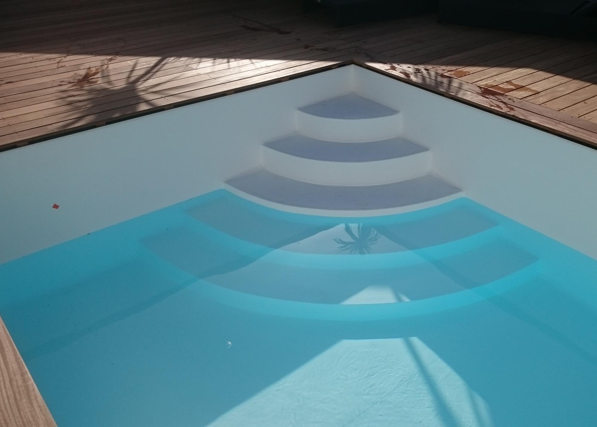 Grâce à la pose d’un liner armé, les escaliers peuvent être réalisés sur mesure, quelles que soient leur forme ou leur configuration : escaliers droits, d’angle, arrondis, banquettes immergées ou plages peu profondes. Cette flexibilité permet de créer des espaces à la fois pratiques et élégants, adaptés à vos besoins et à votre style de piscine.