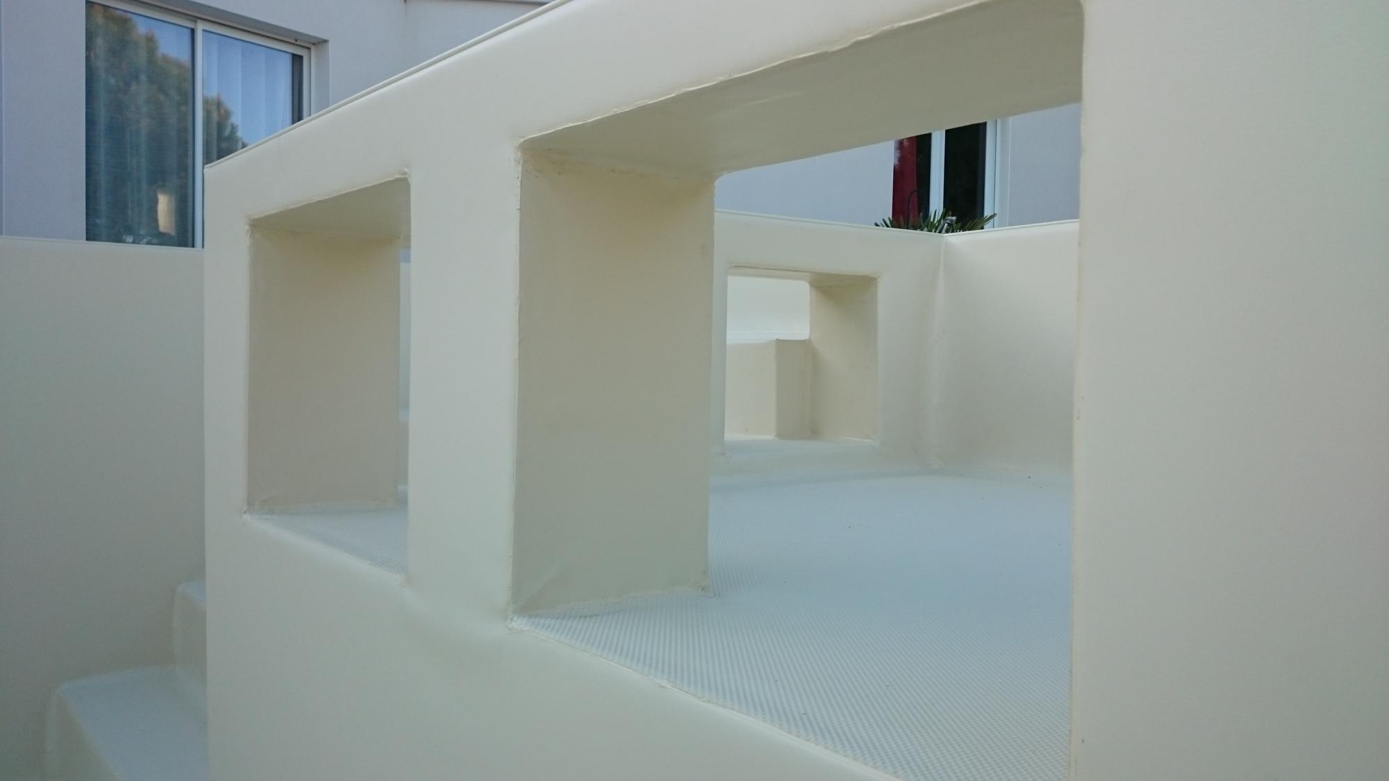 Grâce à la membrane armée, il est possible de réaliser des projets audacieux : bassins aux formes libres, courbes complexes, espaces à plusieurs niveaux, zones balnéo, plages immergées ou encore piscines intégrées à des environnements spécifiques. Ce revêtement s’adapte parfaitement à toutes les contraintes techniques, même les plus exigeantes.