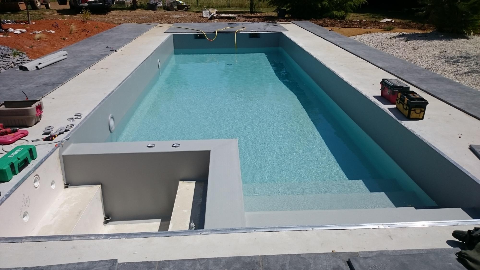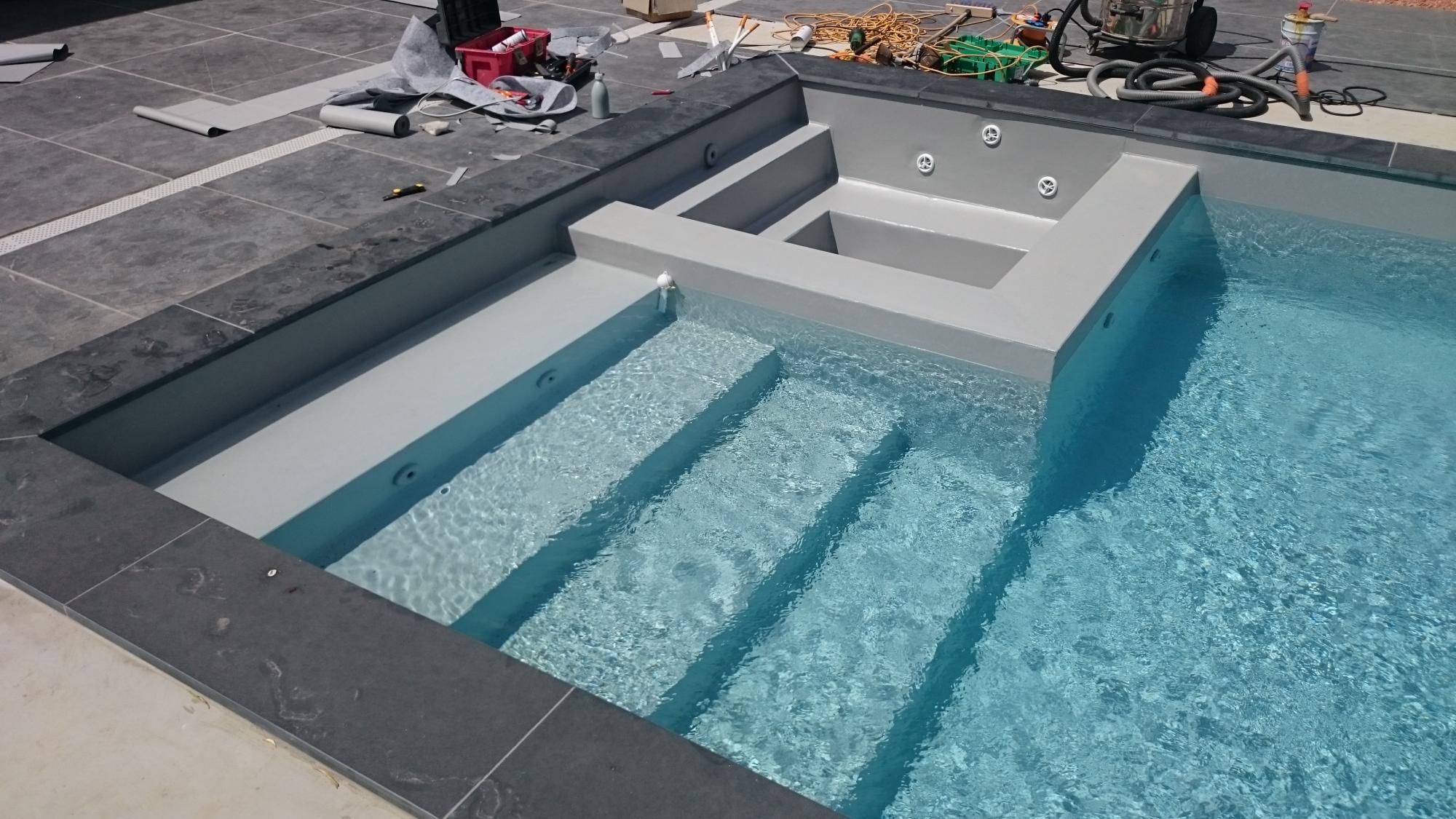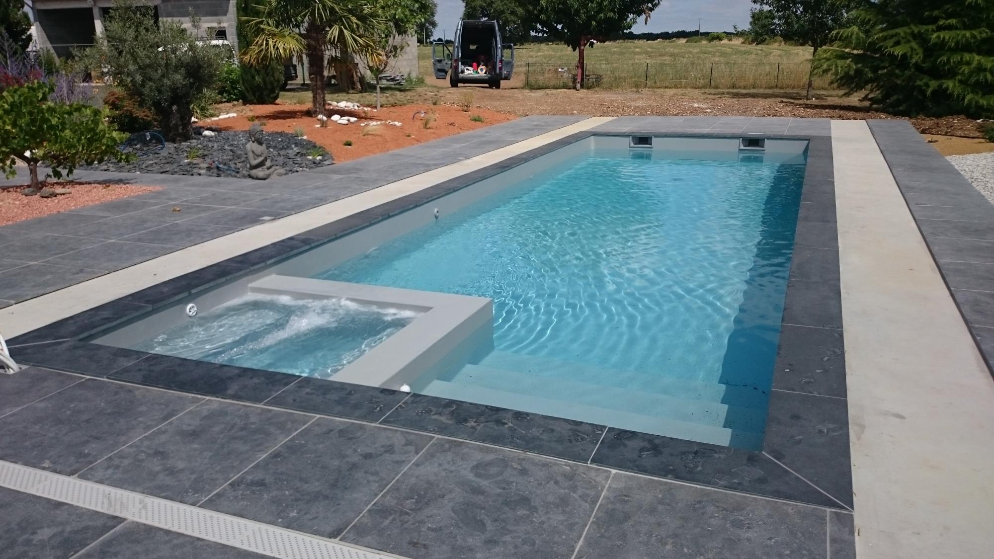 Réalisations › Piscines insolites › Réalisation d’une piscine SPA à Thouars avec liner en membrane armée